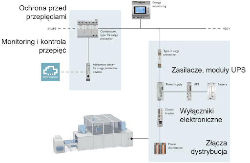 i zamontowane ograniczniki przepięć, zasilacze, moduły UPS, wyłączniki elektroniczne chroniące przed zwarciem i przeciążeniem czy aparaty monitorujące).