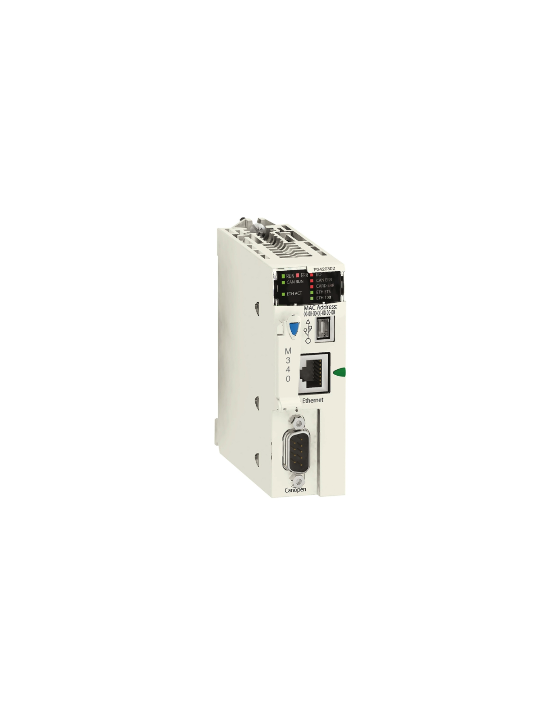 Procesor Schneider Electric Modicon M340 - BMXP3420302 posiada dwa porty komunikacyjne, które umożliwiają podłączenie do różnych sieci przemysłowych. Wspierane są interfejsy takie jak Ethernet, CANopen, Modbus i inne. Ten moduł CPU oferuje zaawansowaną wydajność obliczeniową, co pozwala na szybkie przetwarzanie danych i skomplikowanych operacji logiki. Moduł procesora BMXP3420302 ma wbudowane porty komunikacyjne, które ułatwiają integrację z innymi urządzeniami, systemami i sieciami przemysłowymi. Dzięki temu można łatwo wymieniać dane i informacje między różnymi komponentami systemu. Procesor obsługuje różnorodne protokoły komunikacyjne, takie jak Modbus TCP, Modbus RTU, Modbus ASCII, CANopen i wiele innych. To umożliwia elastyczne połączenie z różnymi urządzeniami i sieciami. Może być również rozbudowany poprzez dodawanie innych modułów I/O z serii Modicon M340, co pozwala na dostosowanie systemu do konkretnych wymagań projektu. Ten procesor jest kompatybilny z oprogramowaniem Unity Pro, które jest środowiskiem programistycznym zaprojektowanym do tworzenia, programowania i konfiguracji systemów automatyki przemysłowej. Seria Modicon M340, do której należy BMXP3420302, oferuje funkcje bezpieczeństwa, takie jak zabezpieczenia dostępu do programów i ustawień oraz inne mechanizmy zapewniające niezawodność i bezpieczeństwo pracy systemu. Firma Schneider Electric oferuje wsparcie techniczne, dokumentację oraz materiały szkoleniowe dla procesora BMXP3420302, co ułatwia jego konfigurację, programowanie i obsługę.| 1024 punktów we/wy | |
