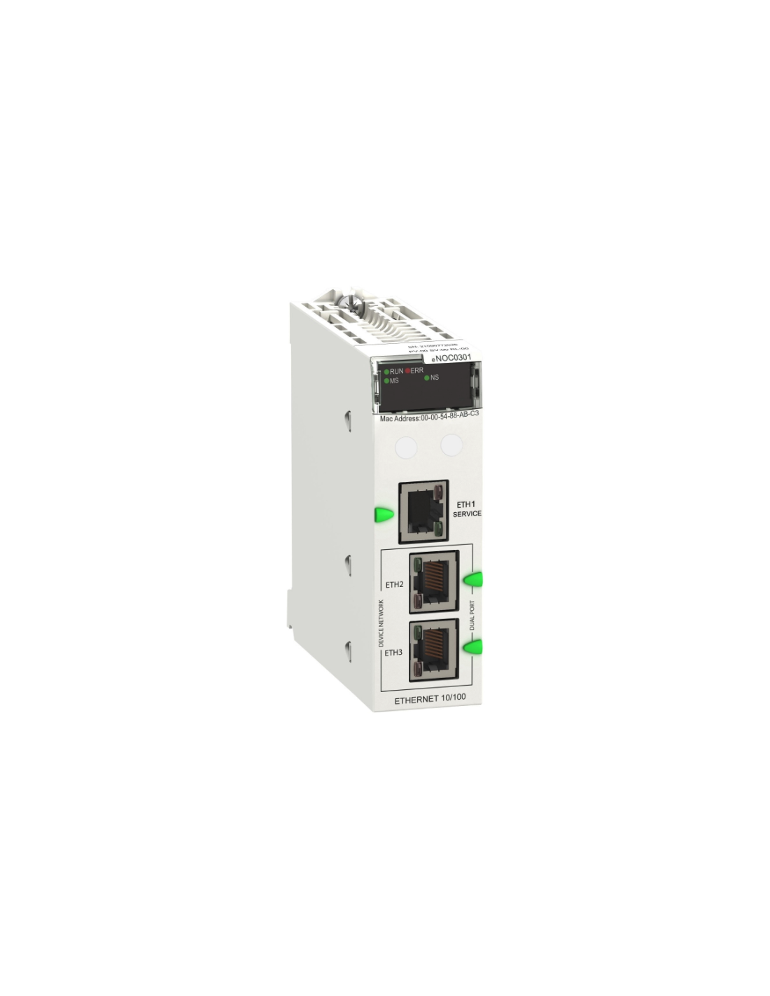 Moduł komunikacyjny Ethernet dla Schneider Modicon M580 - BMENOC0301 to niezbędne rozszerzenie dla sterowników Modicon M580, które umożliwiają skuteczną i efektywną komunikację w środowisku przemysłowym. Zaawansowany moduł pozwala na szybką i niezawodną komunikację między sterownikami a innymi urządzeniami w sieci Ethernet. Umożliwia łatwą integrację sterowników M580 z różnymi systemami i urządzeniami przemysłowymi takimi jak panele operatorskie, systemy nadzoru czy urządzenia peryferyjne, tworząc spójne i wydajne rozwiązania. Moduł obsługuje popularne protokoły komunikacyjne, umożliwiając bezproblemową integrację z różnymi systemami automatyki przemysłowej, oferuje również zaawansowane funkcje bezpieczeństwa, które są niezwykle ważne w dzisiejszym środowisku przemysłowym. Zabezpieczenia dostępu i szyfrowanie danych zapewniają ochronę systemu przed nieuprawnionym dostępem i zagrożeniami cybernetycznymi. Moduł komunikacyjny jest łatwy w instalacji i konfiguracji, dzięki czemu można szybko wdrożyć komunikację Ethernet w systemie M580. Moduł jest również wyposażony w diagnostykę, umożliwiającą monitorowanie stanu połączenia i identyfikowanie potencjalnych problemów, co przekłada się na zwiększoną niezawodność i wydajność systemu. Moduły Schneider M580 to potężne narzędzie, które przenosi Twoje możliwości w automatyce przemysłowej na zupełnie nowy poziom. Dzięki swojej wydajnej i skalowalnej architekturze ePAC (Ethernet PAC), Schneider M580 umożliwia elastyczną rozbudowę systemu, dostosowaną do Twoich unikalnych wymagań. Bez względu na rozmiar i złożoność Twojej aplikacji, M580 zapewni niezawodne sterowanie i monitorowanie procesów, gwarantując płynność produkcji. Seria zapewnia zgodność z najnowszymi standardami przemysłowymi, obsługuje standardowe protokoły komunikacyjne, takie jak EtherNet/IP, Modbus TCP/IP, PROFINET, co ułatwia integrację z innymi urządzeniami przemysłowymi. Programowanie M580 jest łatwe i intuicyjne, dzięki zastosowaniu popularnego języka IEC 61131-3. Oferujemy również narzędzia do szybkiego debugowania i testowania aplikacji, skrócić czas wprowadzania systemu do użytku, można łatwo integrować z systemami SCADA (Supervisory Control and Data Acquisition), co umożliwia zbieranie i analizę danych procesowych oraz wizualizację i kontrolę procesów przemysłowych.| Moduł komunikacyjny | |