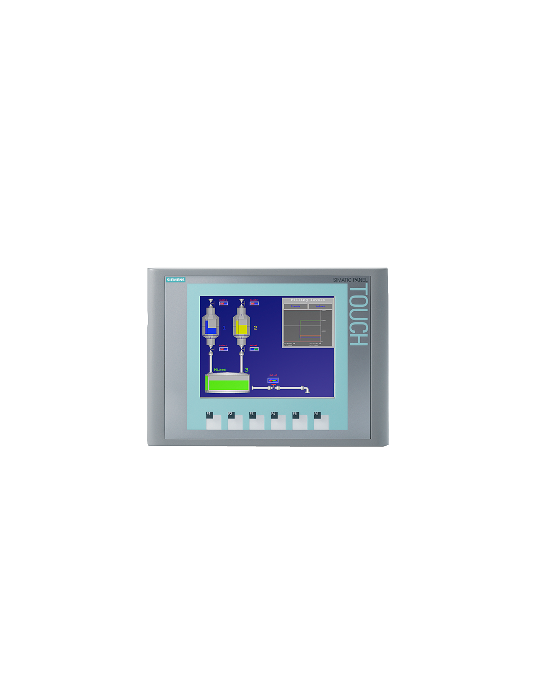 Model posiada sześć klawiszy funkcyjnych z możliwością konfiguracji oraz obsługę komunikacji poprzez interfejs MPI/PROFIBUS-DP, co umożliwia integrację z szeroką gamą sterowników PLC i systemów automatyki. Konfigurację panelu realizuje się w środowiskach programowych WinCC Flexible 2008 SP2 Compact, WinCC Basic V11 lub STEP 7 Basic V11, co zapewnia elastyczność projektowania aplikacji HMI z różnymi wersjami narzędzi Siemens.