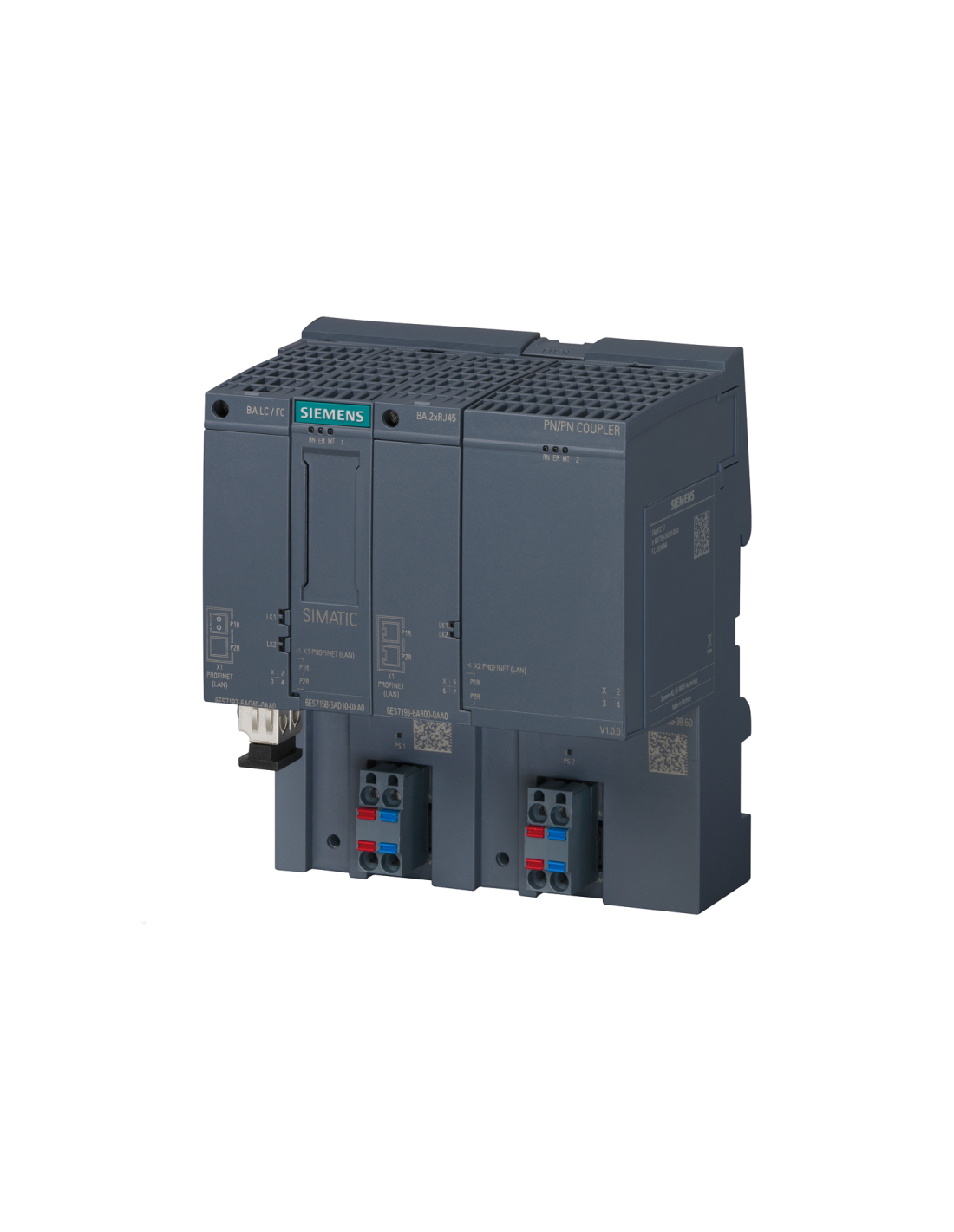 Łącznik rozszerzeń komunikacyjnych PN/PN SIEMENS SIMATIC - 6ES7158-3AD10-0XA0 do użytku z maks. 4 sterownikami, umożliwia bezpieczną i wydajną transmisję danych między sterownikami o interfejsie PROFINET (PN). Urządzenia używać można także do połączenia podsieci Ethernet z inną w celu przesyłania większej ilości danych. Może również wymieniać dane między maksymalnie jednym kontrolerem 4-PN na podsieć. Wyposażony w dwa porty złącza adaptera magistrali, pierwszy służy do odbierania danych, kolejny przesyła dane, w celu jak najefektywniejszego zautomatyzowanego sterowania systemem. Kompaktowe wymiary to kluczowy element przy rozbudowanych systemach, dzięki zintegrowanej szynie montażowej sprawdza się w montażu w ciasnych przestrzeniach.
